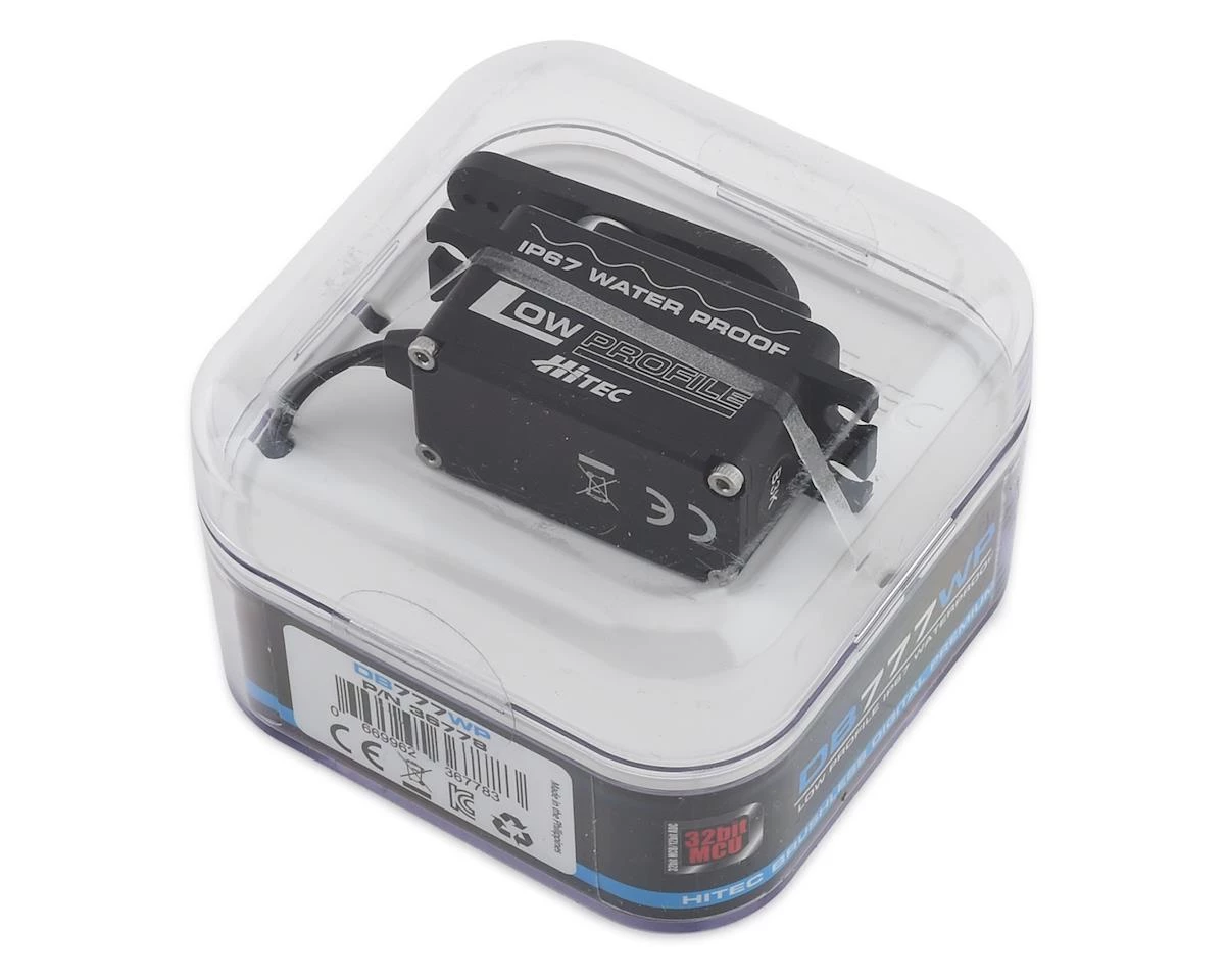 This is a Hitec High Voltage DB777WP D-Series 32-Bit MCU Low Profile Waterproof Servo, a high-performance, low profile servo designed with a full metal, IP-67 rated waterproof case. This advanced, programmable servo is a dependably fast, low profile option for 1/10 buggy and touring car drivers. This servo is powered by our 32-bit MCU (Microcontroller Unit) and 12-bit ADC (Analog to Digital Converter), bringing high resolution, rapid response, and patented Smart Sense technology to kick your ride into top gear.