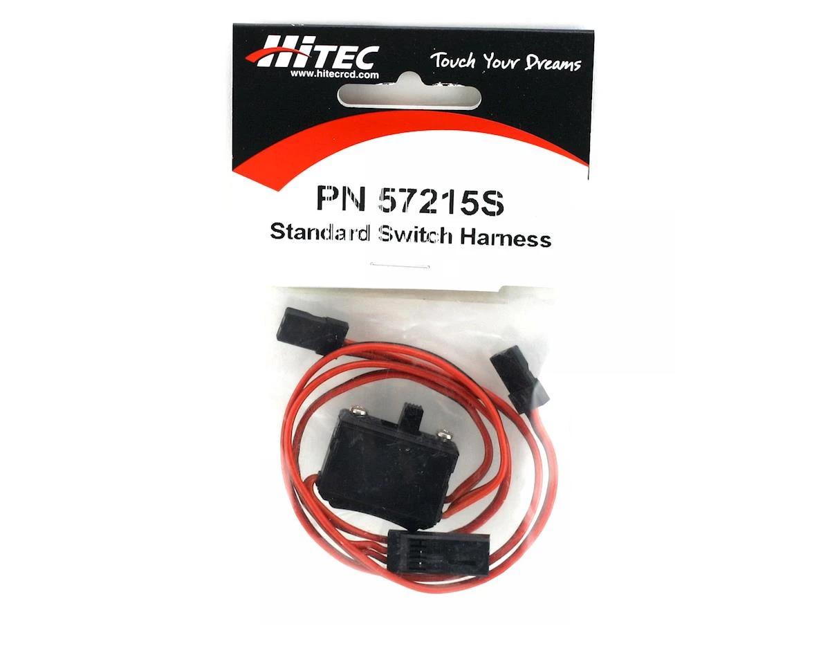 This is a standard receiver switch harness from Hitec, with integrated charging connector. This version has JR style connectors on it, so it will work with any brand of battery pack and with any brand of receiver. This switch harness has an integrated charging lead, so you can charge your receiver pack without having to remove it from your car.