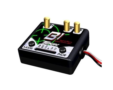 Tekin’s B1 and B1-R bring exceptional brushed technology to mini scale vehicles. The B1 is small, less than 1″ square, yet powerful enough to run any micro brushed motor available (up to 380 size). On-Board Temperature Indicator and Lipo cutoffs bring extra safety and highly reliable operation. The B1 has thousands of possible settings right on-board with Tekin’s Quick-Tune Programming and is also capable of extensive tuning and updates when used with Tekin’s HotWire PC Interface (sold separately). The B1 can be used with NiCd, NiMH and Lipo batteries and is ROCK CRAWLER SAFE for use in rock crawlers with 2S lipo and 540 size 55 turn or higher motors.