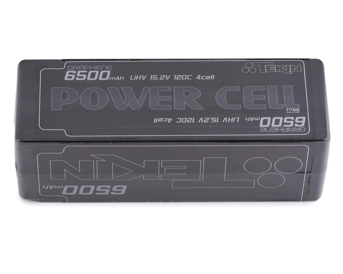 Tekin Power Cell 4S Hard Case 120C Graphene LiPo batteries are High Voltage capable, increasing both the energy density of the cells and the end voltage. Charging your packs up to 4.35V per cell yields more punch due to the higher voltage as well as increased pack capacity, giving your 1:8 Buggy, Truggy, Monster Truck or Car longer run time. Experience more power and less fade during a run with HV POWER CELL battery packs.