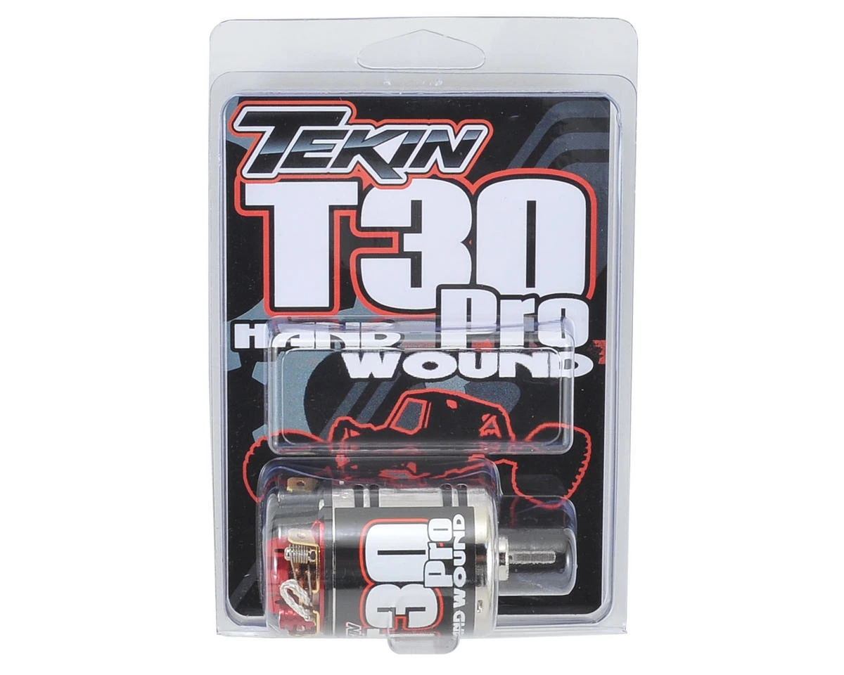 This is the Tekin 30 Turn Pro Hand Wound Rock Crawler Motor. Tekin’s Pro Hand Wound Brushed Crawler Motors are raising the bar with the release of the 30 and 40 turn versions. Perfect for all aspects of Rock Crawling, these Pro Hand Wound motors give you the punch or the creep when and where you need it. The lower turns give you that increase in wheel speed many are looking for in todays setups, whether crawling the rocks or hopping over them. Using the same Larger Comm, Lay Down Brushes, Precision balanced hand winds as Tekin’s previous trail proven pro motors the Tekin Pro Hand Wound T series motors are ready to get the job done.
