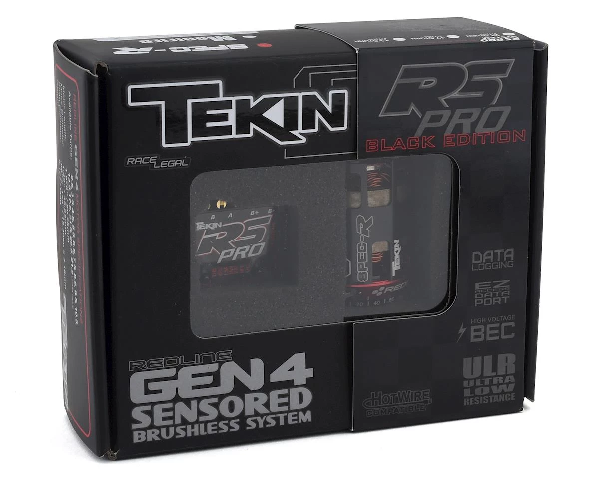 The Tekin RS Pro Black Edition Sensored Brushless ESC/Gen4 Spec R Motor Combo is the ultimate choice for racers looking for an ultra low resistance spec racing combo, that can get them to the top of the podium at the highest level of competition. Tekin’s SPEC-R brushless motors are engineered for award-winning performance. Utilizing the best materials available Tekin redesigned the SPEC-R to cut weight while reducing resistance, resulting in a purebred Spec racing machine. On Road or Off, the SPEC-R handles all situations, providing smooth power and control across all RPMs when you need it.